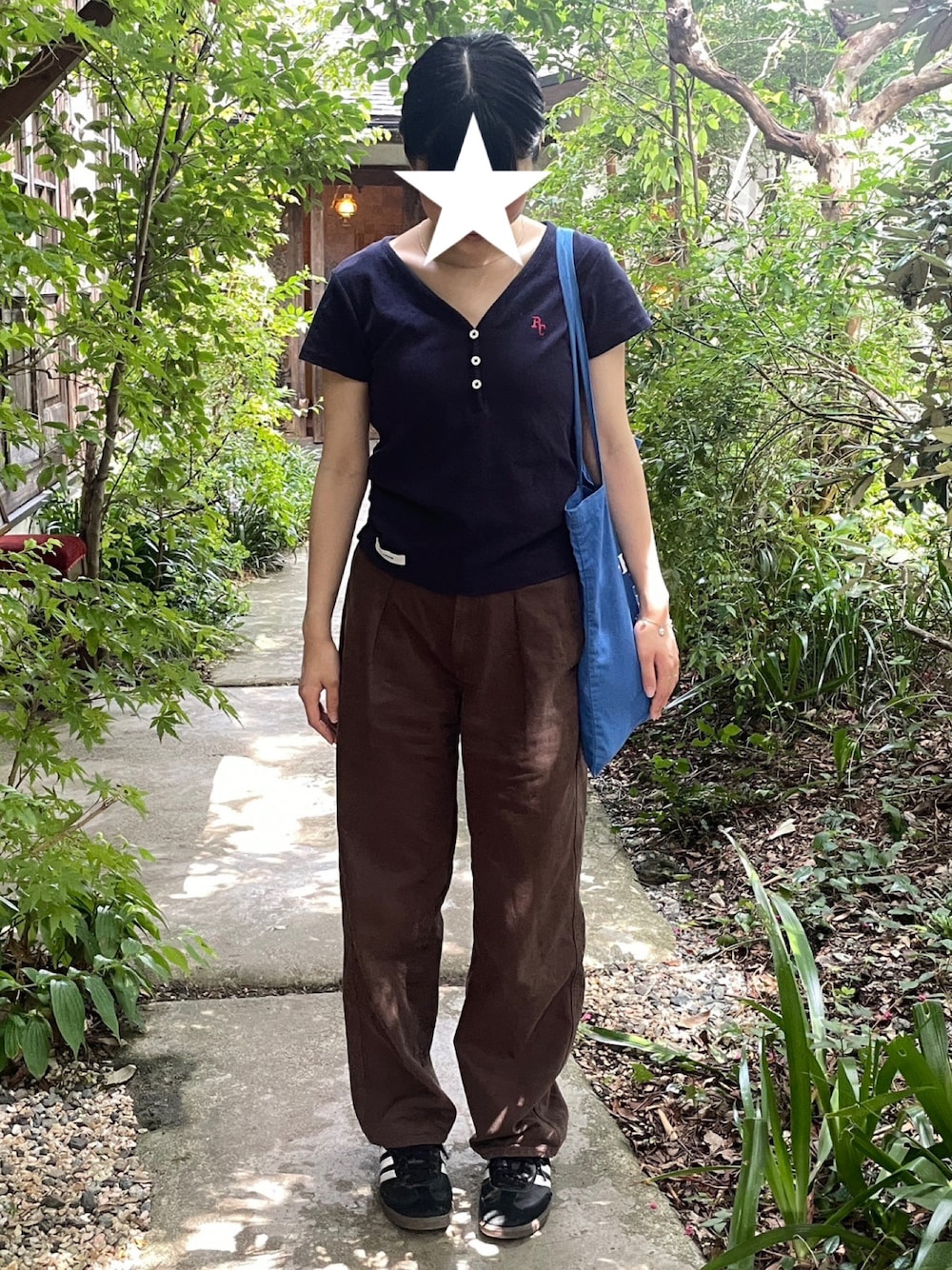 はなのTシャツ/カットソー「【WEB限定/お気に入り登録2.6万人】Vネックヘンリー胸刺繍半袖Tシャツ」を使ったコーディネート