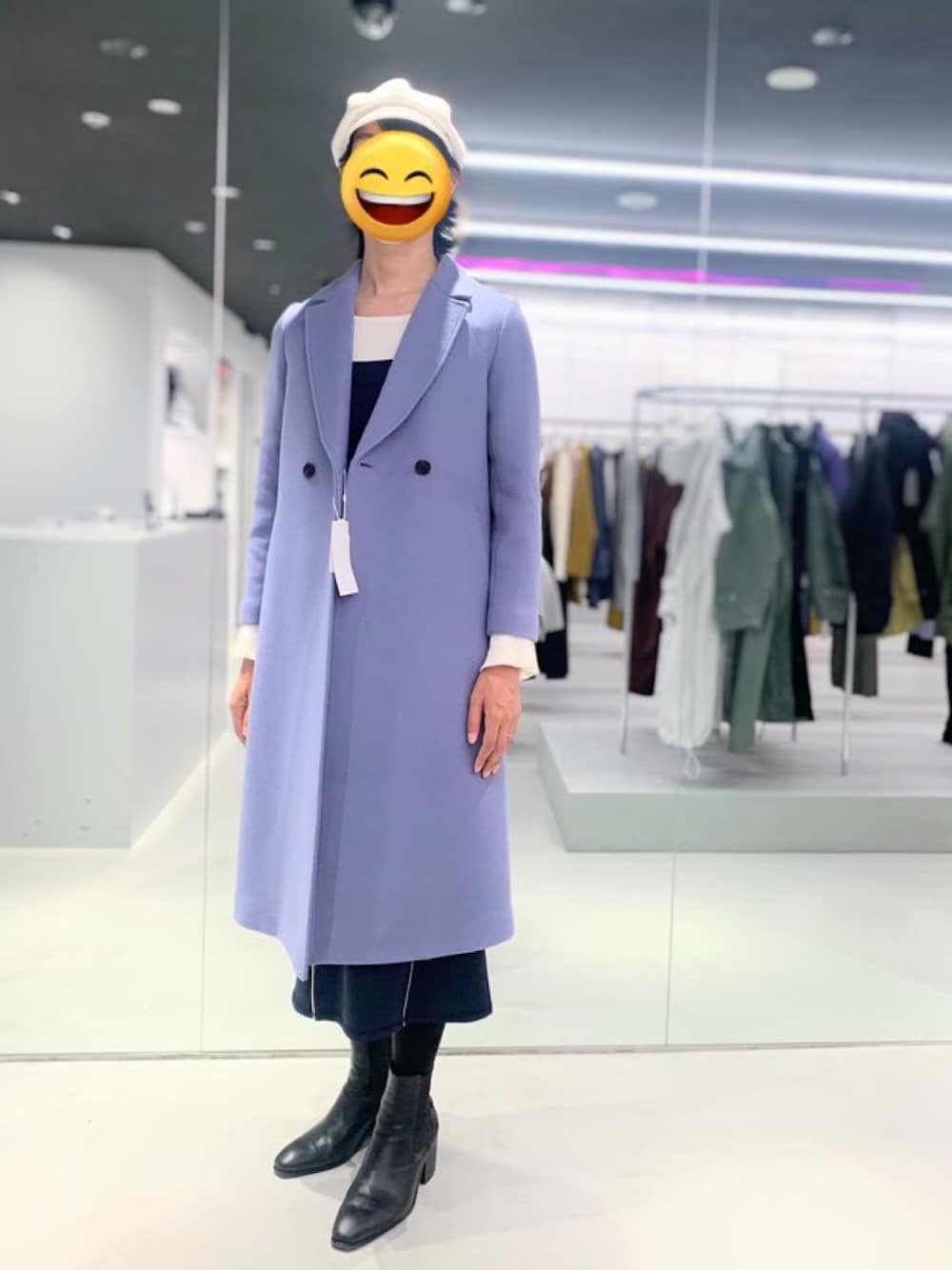 ご覧いただきありがとうございます😊 冬の記録です❄️ 冬のアウターを物色していた際の試着写真です。このコートはラベンダー寄りのブルーが気に入って、こののち我が家にお迎えし、この冬大活躍してくれました💙☺️💙 写真は店員さんが上手に撮ってくださいました。この場を借りましてお礼を申し上げます。