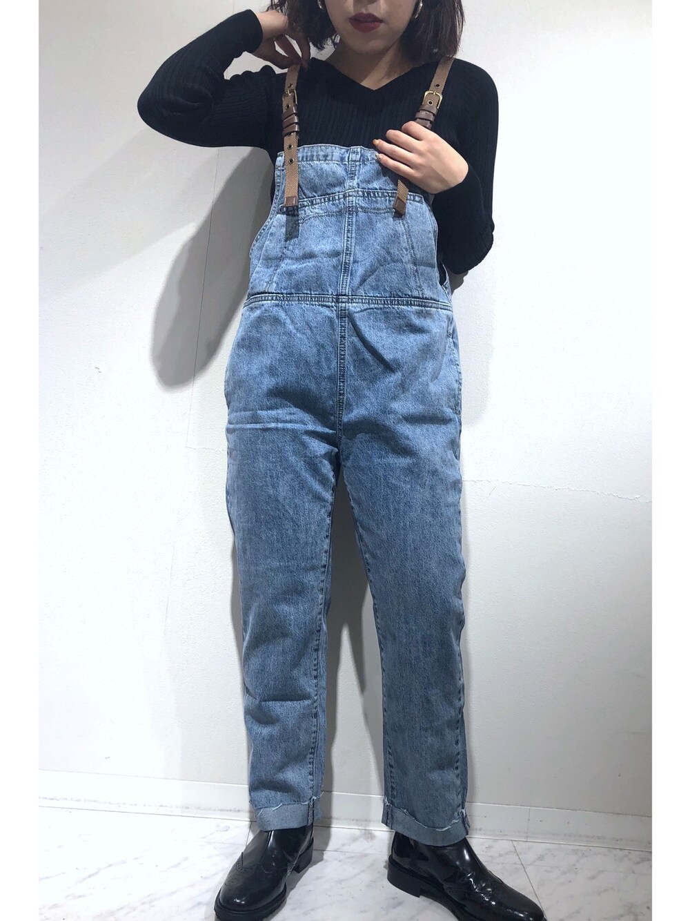 子供っぽくなりがちなデニムのサロペットはオールブラックで大人っぽくがオススメ。 Instagram→@hodgepodge_torayachain