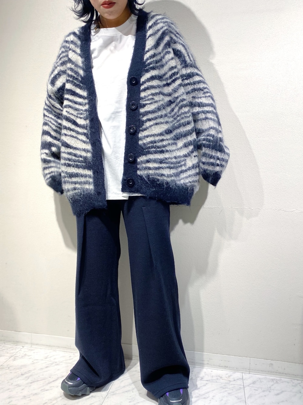 今年っぽいモノトーンコーデには ゼブラ柄がマスト。 フレアパンツと合わせてスタイルアップ。 Instagram→@hodgepodge_torayachain