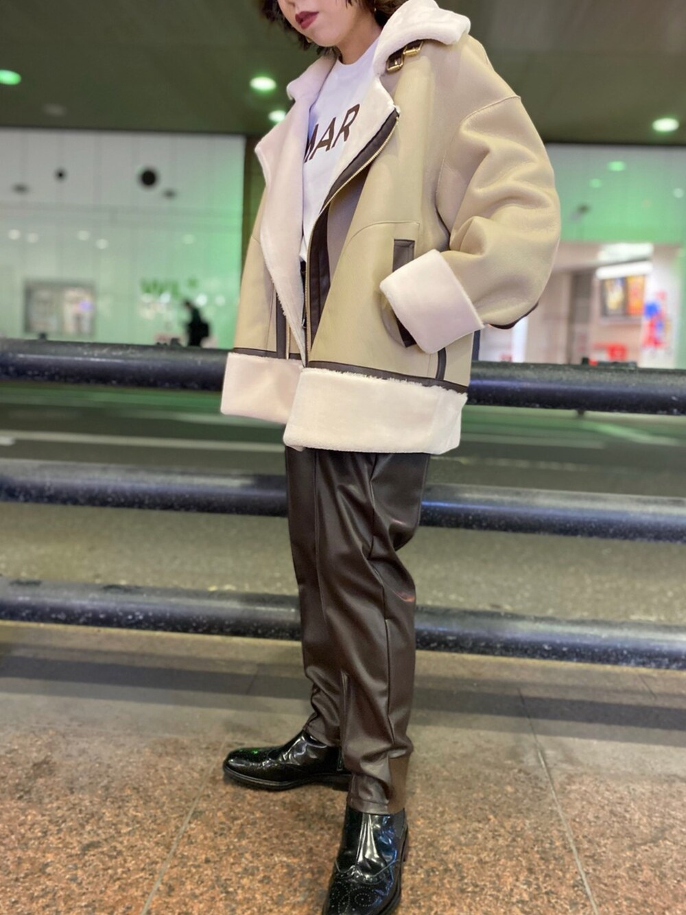 ボリューミーなムートンジャケットはテーパードパンツで大人カジュアルなstylingで。 Instagram→@hodgepodge_torayachain