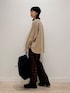 ブラウン×ブラックでまとめました🐈⬛ パンツはトラウザーですが裾がそんなに細身ではないので、ワイドすぎるパンツが苦手だけどゆるっとしたパンツが履きたいという方にはおすすめです◎ ▼こちらも是非▼ <button><a href="https://wear.jp/hohoinohoihoi/" style="color:black">【wear】</a></button> <button><a href="https://www.instagram.com/kudo_8282?igsh=MW9jNHpmNTI4MW41eg%3D%3D&utm_source=qr" style="color:black">【Instagram】</a></button>