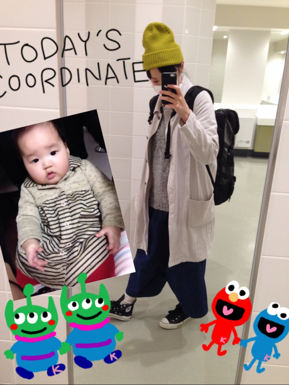 今日はムートンブーツを探しにMOPに。 いいのが無く買いませんでした。 娘のワンピはハンドメイド(^_^) 久しぶりに着せたら、腕がもうパンパン(笑) アウターにミニーちゃんポンチョを着せて♡ 私のデニムコートとニットの中に着てるドット柄シャツもハンドメイド♡