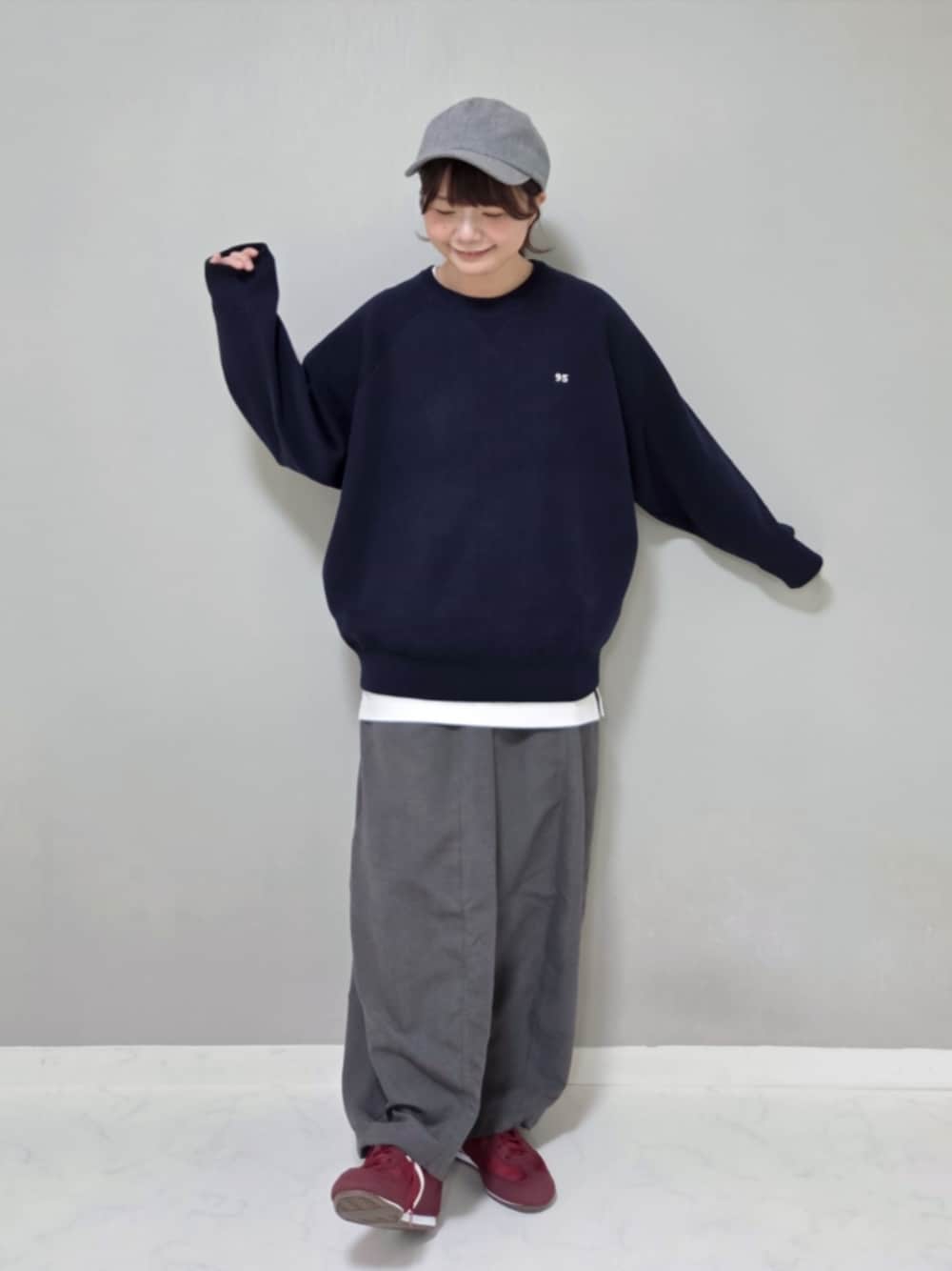 asukaのニット/セーター「ナンバリング刺繍 ウォッシャブル スウェットライク ビッグニット」を使ったコーディネート