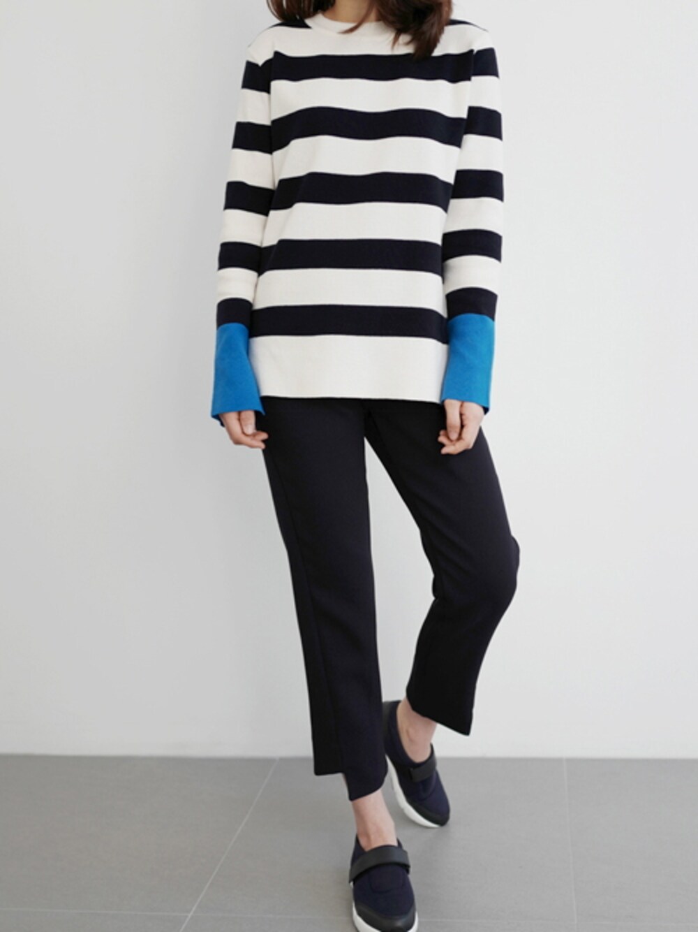 holicholicのニット/セーター「配色ポイントボーダー柄ニット」を使ったコーディネート
