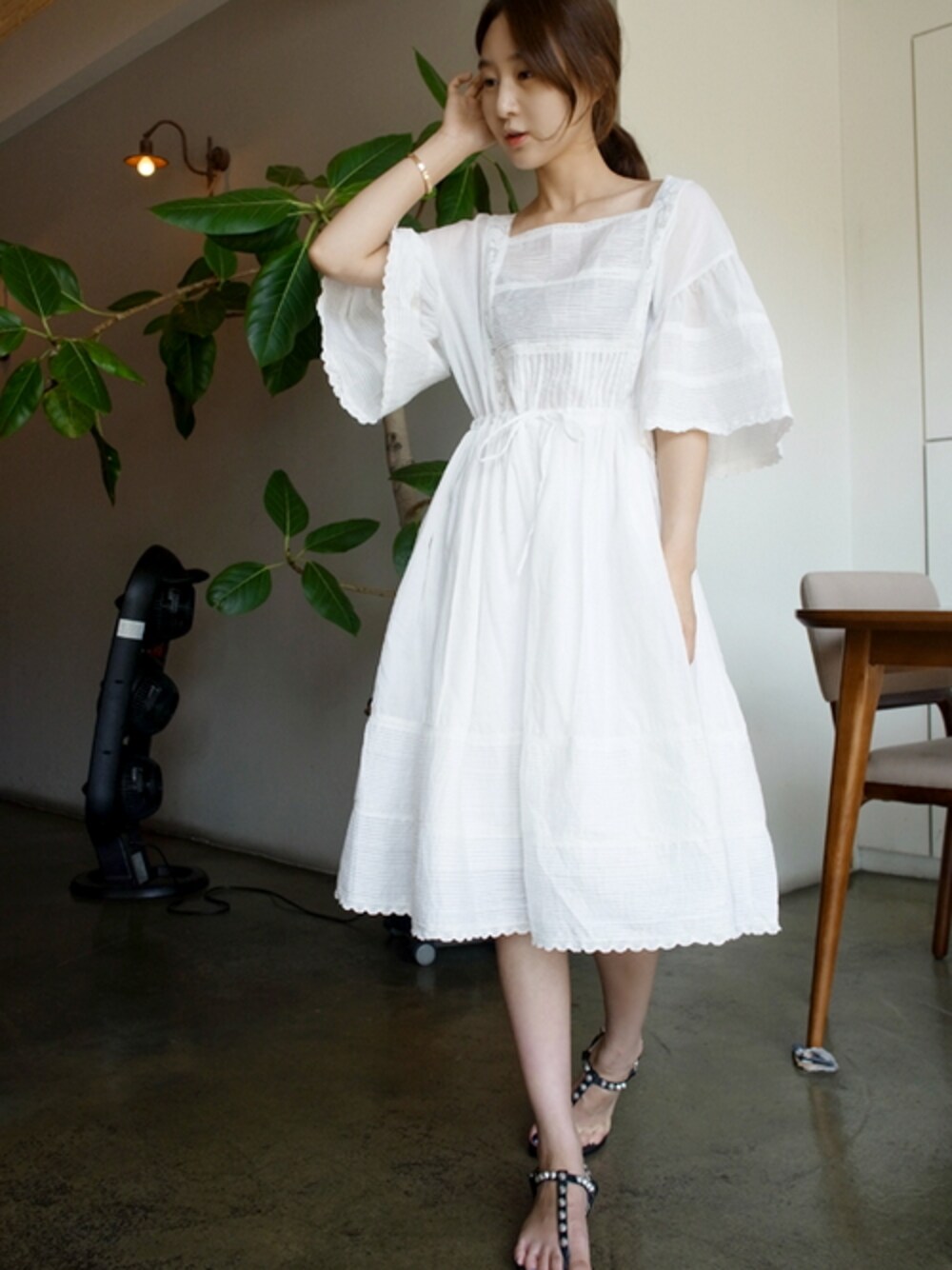 フレンチシックワンピース クリーンなホワイトカラーに細かいプリーツと レースディテールがミックスされハンドメイドの ような洗練されたアイテム★ サイトはこちら↓ http://jp.holicholic.com/