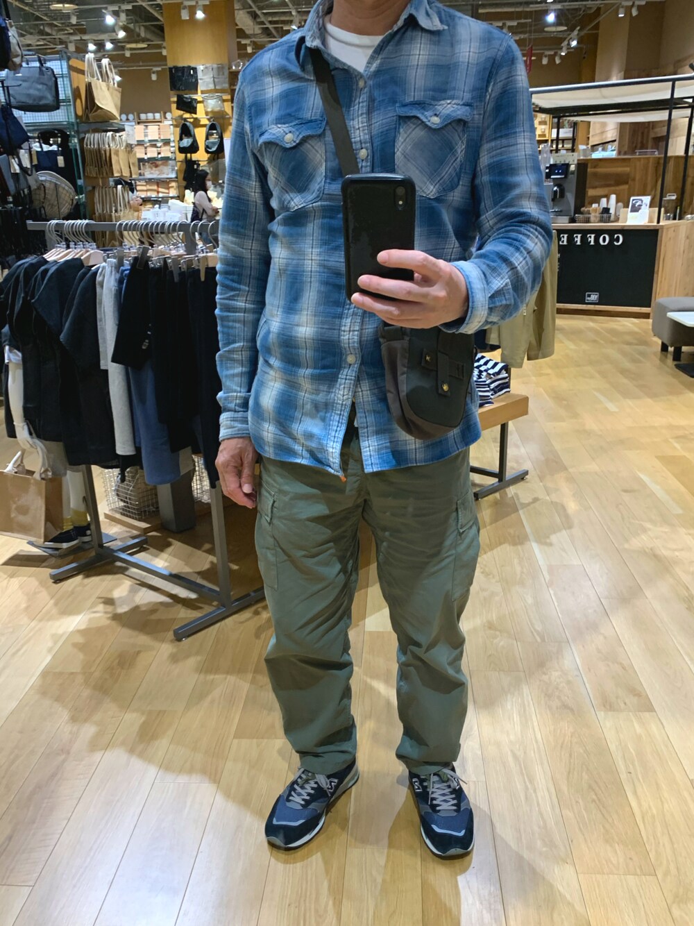某店舗内にて大きな鏡があったのでつい・・・。 ラルフローレンのシャツはずっとお気に入り。