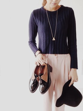 「hollygardenのアイテム(モカシン/デッキシューズ、ブラック系)」を使った、홀리가든さん(レディース・167cm)の秋コーディネート