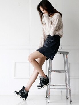 「Mocah bostonのアイテム(スニーカー、ブラック系)」を使った、홀리가든さん(レディース・167cm)の秋コーディネート