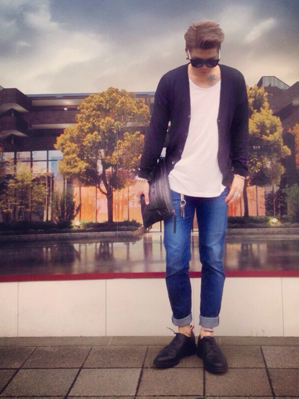 カーディガン パンツ UNIQLO クラッチ バレンシアガ