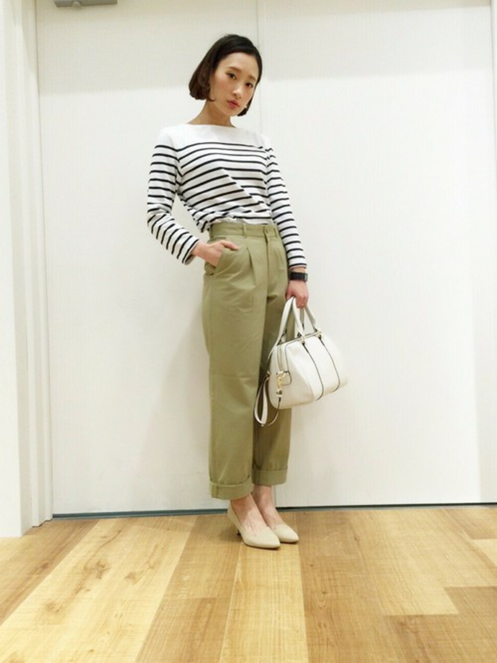 ホーリーのチノパンツ「コットンツイル ワイドチノパンツ」を使ったコーディネート