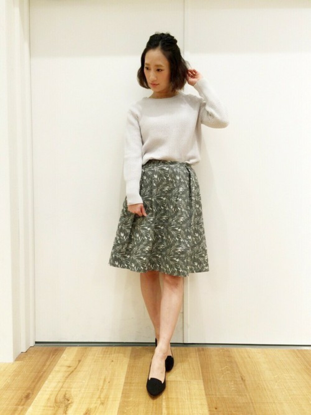久々に素足になりました。。モジモジしてしまいます。。が。がが。。。。!! やはり素足にパンプスは一気に女子力が上がった気分になります!! リゾーティーなプリントが、春夏ムードを盛り上げてくれ、ホワイトやブラックをベースにしたカラーなので、トロピカルな雰囲気になり過ぎず、タウンスタイルにぴったりです