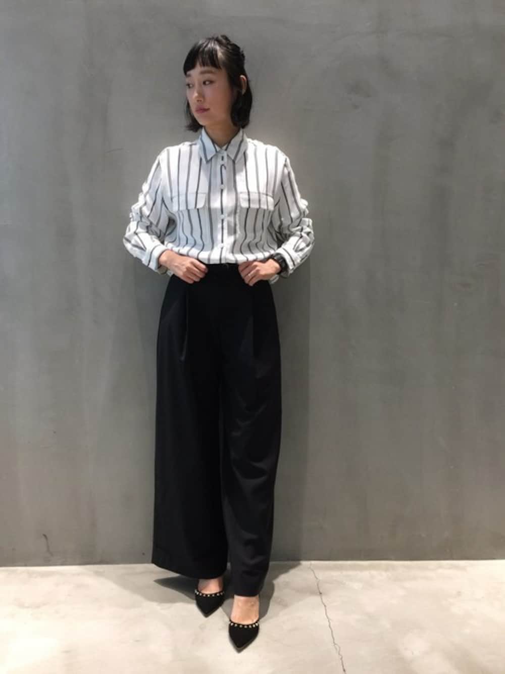 ブラック系のパンプスを着用したレディースの春コーディネートの1枚目の写真