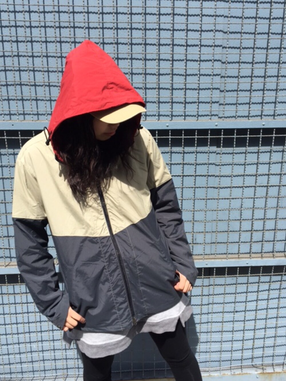 momoのパーカー「GREEN BOWL Color Scheme Nylon Full Zip Parrka/グリーンボウル カラー 配色 切り替え ナイロン フル ジップ パーカー」を使ったコーディネート