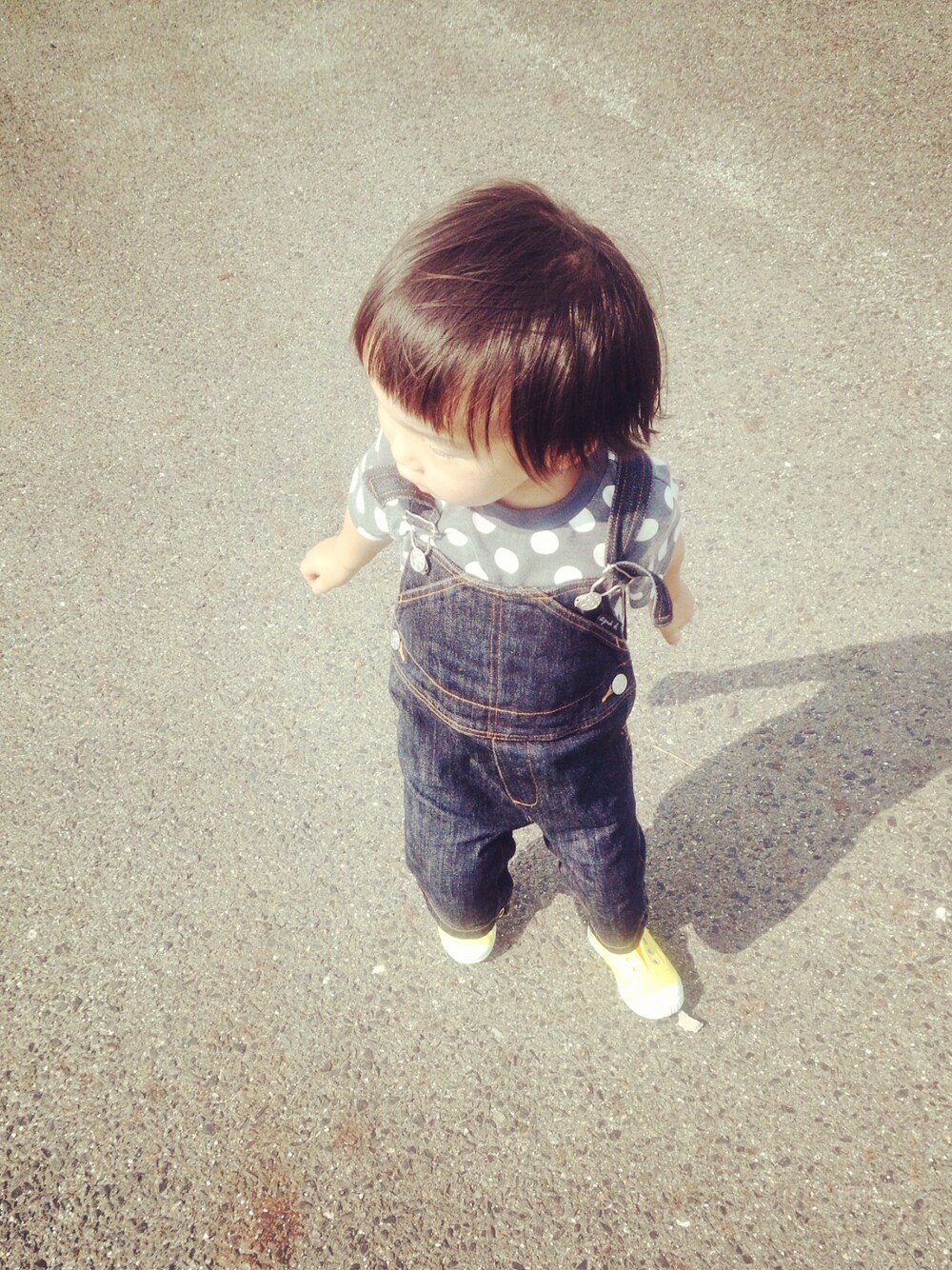 Limにカットとカラーしてきました それに付き添って頂いた夫と息子。! サンキュー(´V`)♪ うえ:西松屋 オーバーオール:アニエスベー くつ:シエンタ