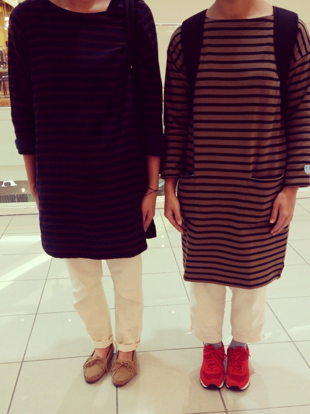 服がまるかぶりしました(笑) ワンピ;オーチバル パンツ;ニコエンド 靴;new balance
