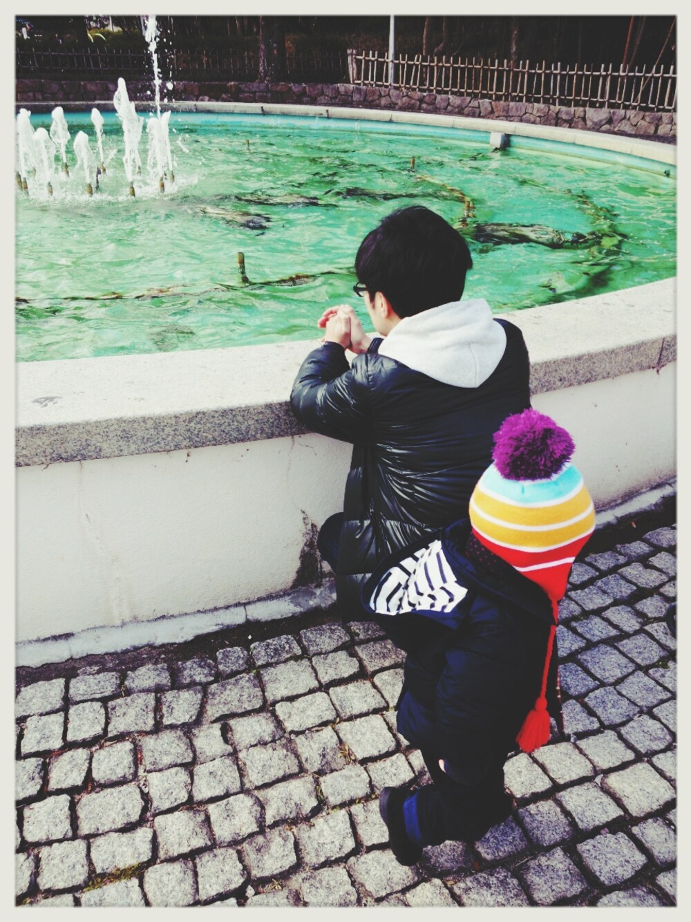 公園にて。 さぶっ!!! ニット帽:ブランド不明 アウター:GAP パンツ:MUJI 靴:ニューバランス