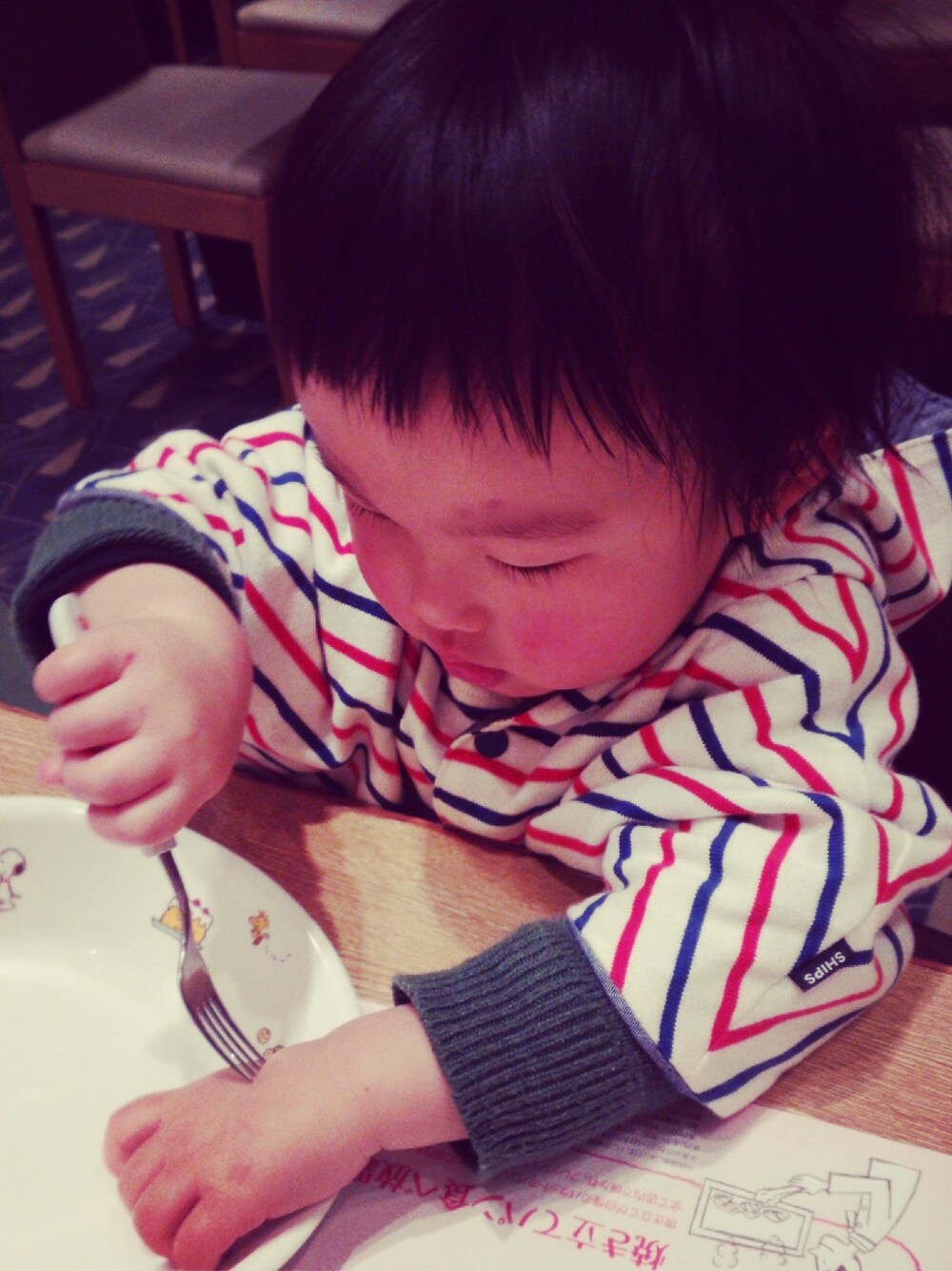 家族3人でランチー! ポンチョ:ships KIDS トップス:Gap パンツ:ベルメゾン レギンス:UNIQLO 靴:ニューバランス 茶