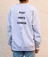 ◯ POET MEETS DUBWISE 定番のバックロゴプリントのスウェット。 ボディはFRUIT OF THE LOOM。 着心地、デザイン共にヘビロテ間違いなしの1着です! 今の季節にぴったりな厚すぎない生地感が◎ サイズはMサイズを着用。 女性が着ても可愛いシルエットです!
