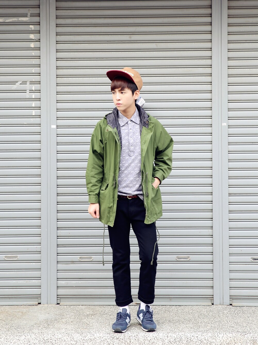 轟炸機のキャップ「卡其字母棒球帽」を使ったコーディネート