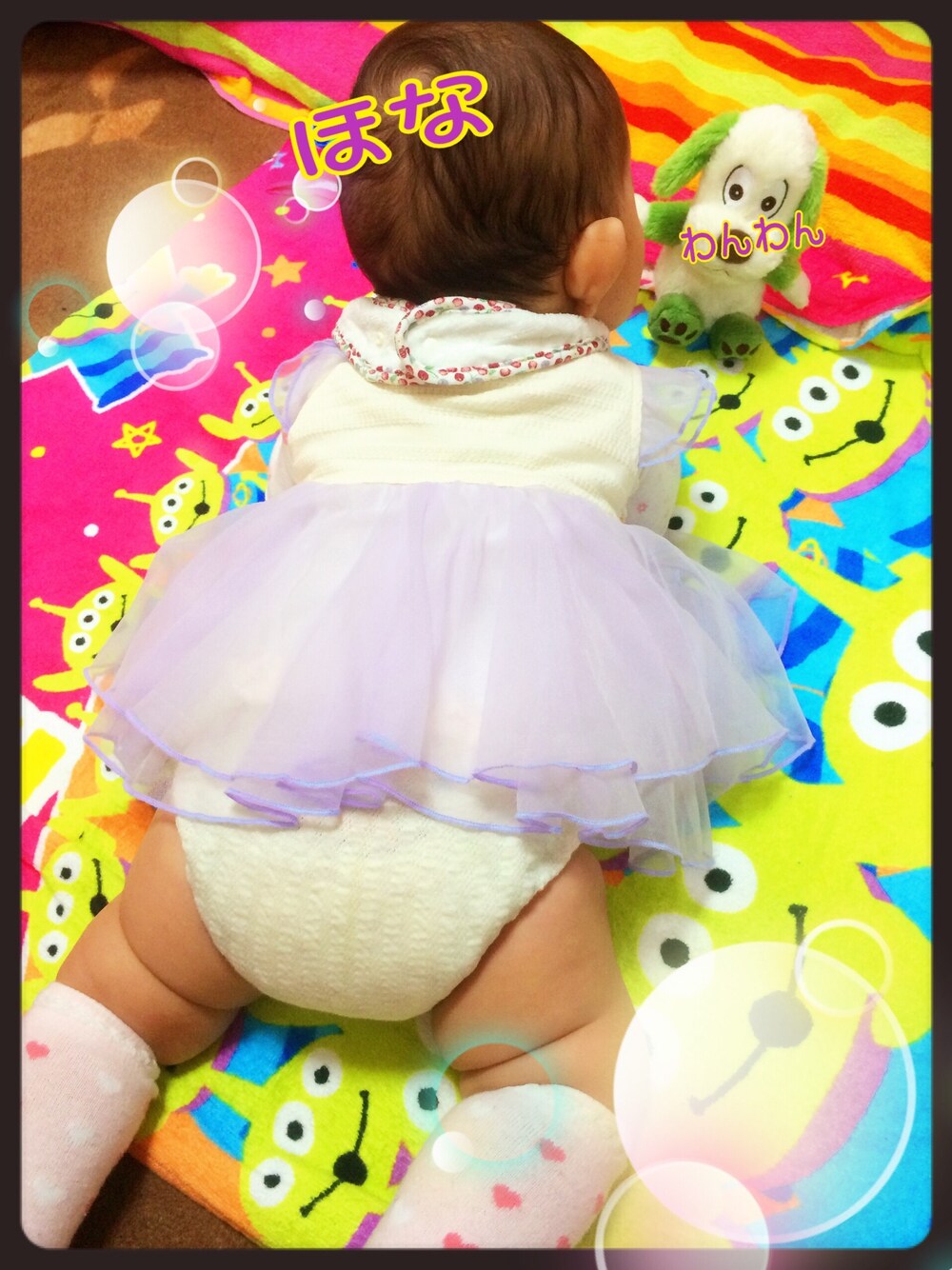 いいね♡ ありがとうございますm(_ _)m まだ使い方がいまいち分かっていませんが、楽しませてもらってます♡ お腹の中の子が女の子と分かってすぐに母が買ってくれたロンパース♪ あれ?似合わ、、、ない(笑) 後ろ姿はたまらなく可愛いのになぁ♡