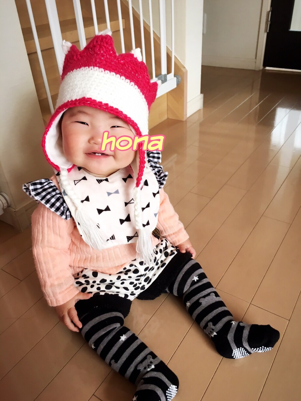 スタイは姉の手作り♪ シンプルで使いやすくてヘビロテ中♡ 西松屋の帽子は冠になってて可愛くて♡ お値段まで可愛い198円♡