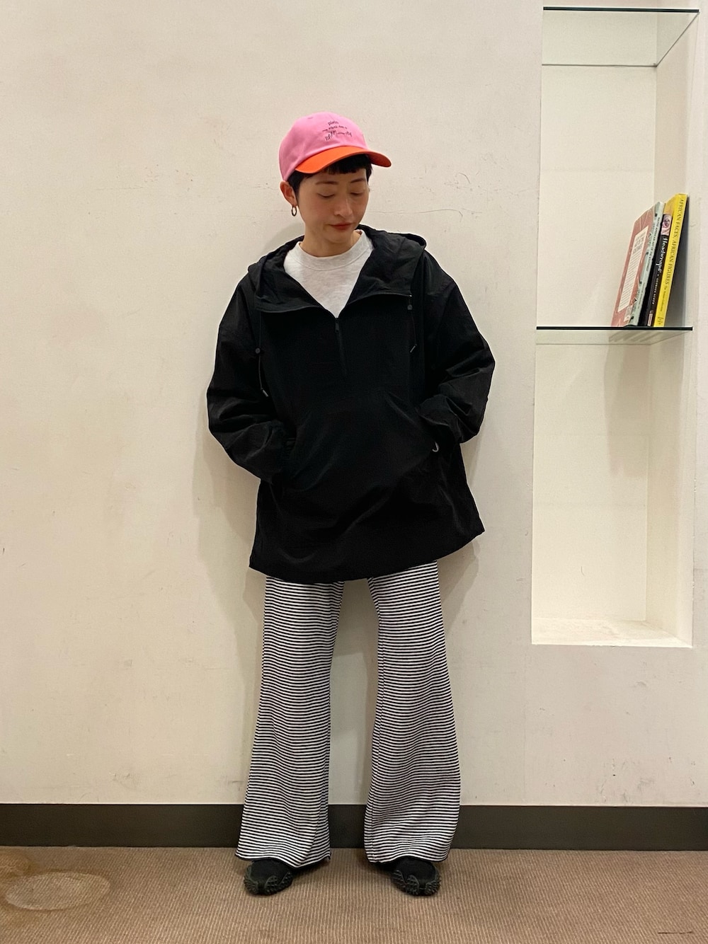 スポーティなあのラックにイージーなボーダーパンツを合わせて、公園スタイルにしてみました! おしゃれなだけでなく、軽くて楽な上下なのでお子さんとのお出かけにもバッチリです◎