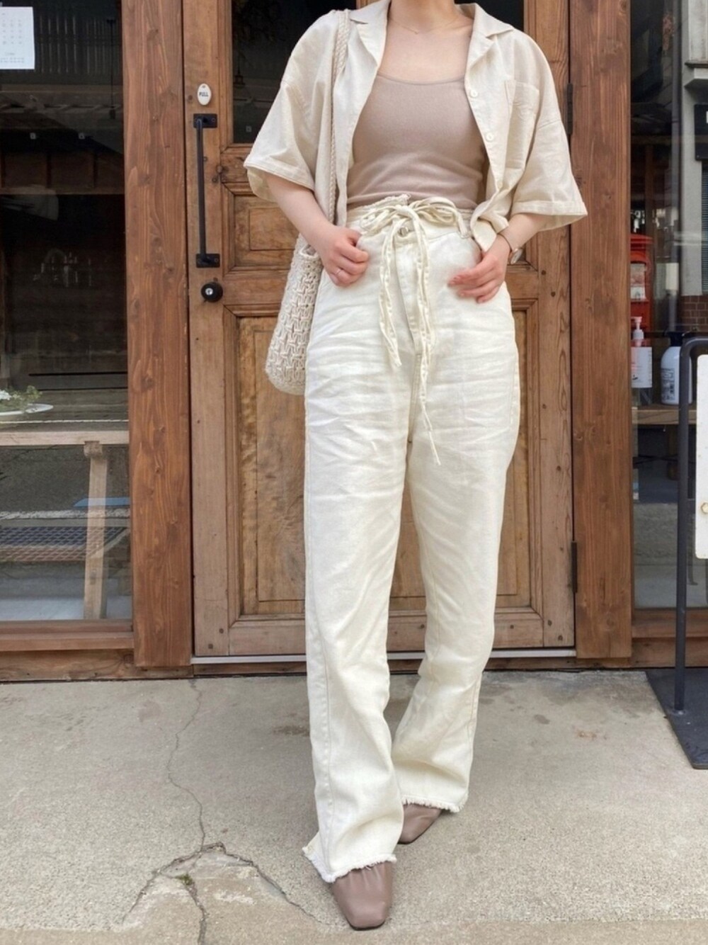 セットアップ風ワントーンコーデ🤍 ・着回し万能なコットンシャツ ・ウエストがアシメになっている紐付きハイウエストデニム ・小物で少し綺麗めプラス    とってもお気に入りコーデでした〜🥰