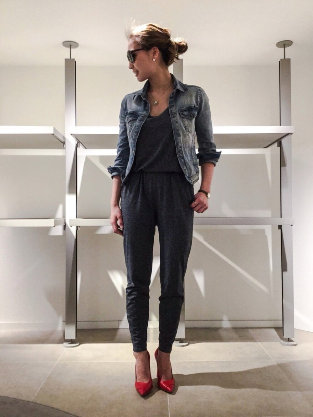 オールインワンコーデ ヒールでスタイルアップしてます👠♡ カジュアルな素材なのでカーディガンやスニーカーで普段使いも出来てお気に入りです✨