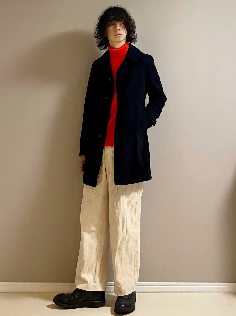 ステンカラーコート/green label relaxing タートルネック/BEAMS コーデュロイパンツ/SENSE OF PLACE 靴/uniform experiment