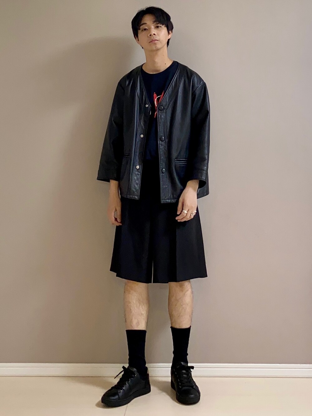 レザージャケット/KIDILL Tシャツ/KIDILL ショーツ/ADANS スニーカー/DOLCE&GABBANA ショーツ最後はオールブラックでまとめました。