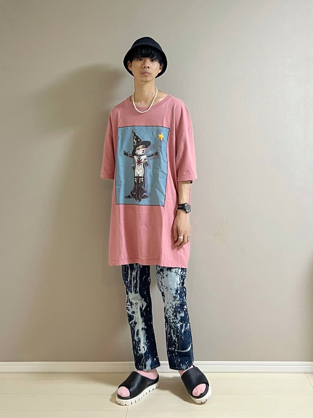 バケットハット/Y-3 Tシャツ/KIDILL デニム/used サンダル/BENCH ネックレス/MONKEY TIME