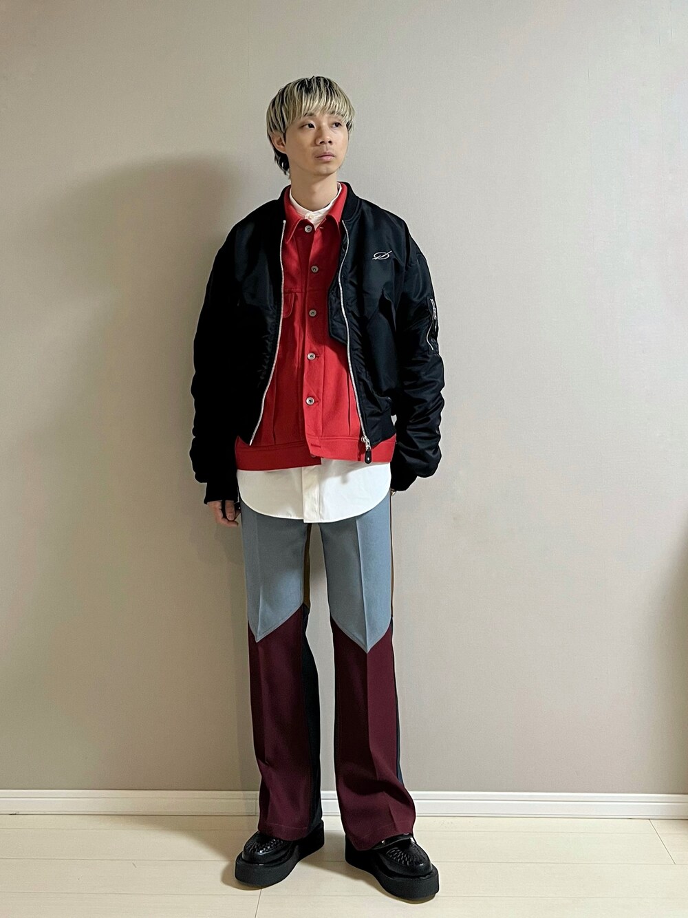 ma-1/51percent ベスト/DAIRIKU シャツ/DAIRIKU パンツ/DAIRIKU シューズ/George COX×Charles Jeffrey LOVERBOY 今年はDAIRIKUをたくさん着ました。 新たなスタイリング提案と着回しの幅を広げてくれたブランドに出会えたことに感謝しています。