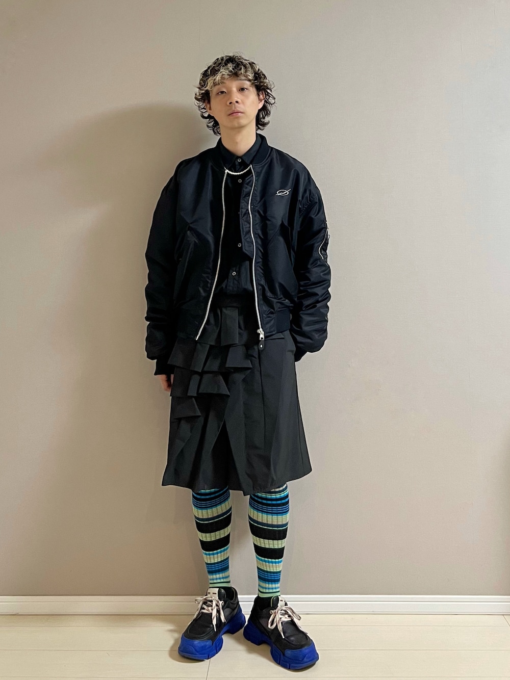 MA-1/51percent シャツ/JUHA ショーツ/TAAKK ソックス/FACETASM シューズ/GUCCI ネックレス/Jieda こういうショーツを探していました。 フリルがかわいい🙆♂️