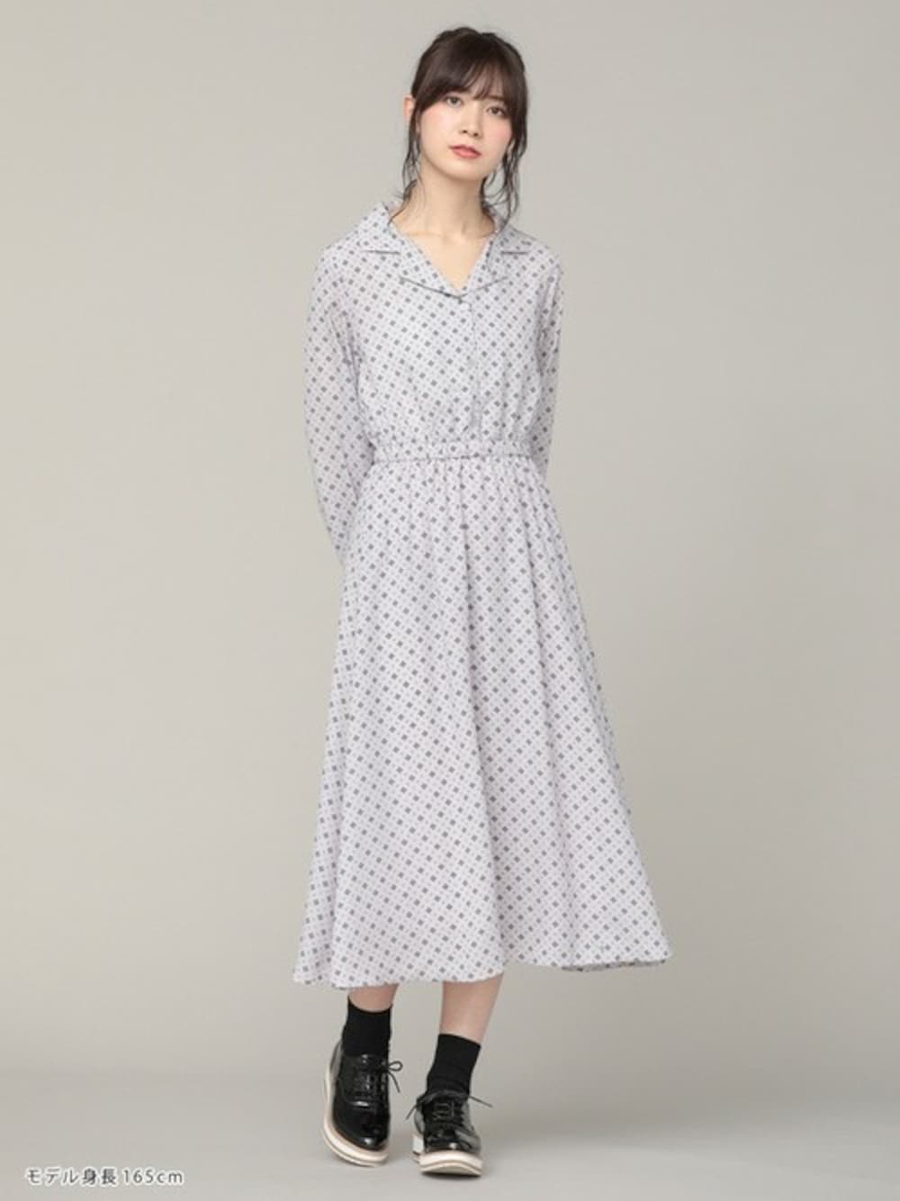 ●ワンピース 大人っぽく着こなせるデザイン 開襟デザインとクラシカルな柄でレディな雰囲気のワンピース。 ウエスト部分はゴム仕様で着やすく、スタイルアップも叶えてくれます。 今年らしい長めの丈感で、1枚で旬なスタイリングが完成。 足元はレギンス合わせやショートブーツ合わせがおすすめです!