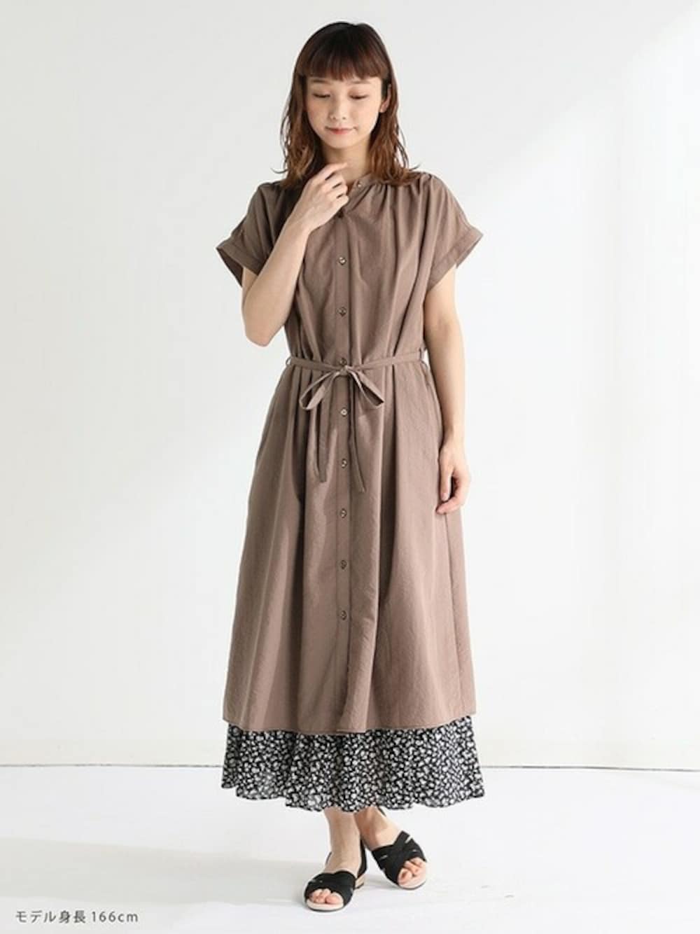 ●ワンピース(品番:673-52-8542) マオカラーとヨークに入ったギャザーが大人可愛いワンピース。 1枚ではもちろん、ボタンを開けて羽織りとしても使える万能アイテム。 ゆったりとしたサイズ感で体型カバーも叶います◎ 付属の共ひもベルトでウエストマークして、ロングスカートと合わせたスタイリングが今年らしくてオススメです。 ●ボトムス(品番:555-24-8314) 繊細でエアリーな印象のスカート。 裾に向かってプリーツがゆるくなる加工で程よいカジュアル感をプラスした、大人かわいいアイテム。 ウエストはゴムでストレスフリーなはき心地◎ 裏地付きなので安心して着用していただけます。 ロゴTシャツやレースプルオーバーなど、どんなトップスとも相性抜群◎ ●シューズ(品番:235-134-7018) キャンバス地のダブルクロスデザインがカジュアルなサンダル。 フラットなソールとふんわりしたインソールで疲れにくく、長時間の外出にもぴったり♪ 普段使いからお出かけやリゾートまで、幅広く使える優秀アイテムです。