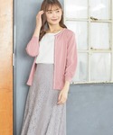 ●カーディガン(品番:646-32-0882) 衿ぐりと前立ての配色ラインが上品な7分袖クルーカーデ。 『UV加工』『接触冷感』機能付きで、気温が高い日でもさらっと着られます。 ●トップス(品番:646-33-0873) 程よいシアー感の異素材ボリューム袖が女性らしいニットトップス。 身頃はレーヨン混のサラッとした素材でこれからの季節にぴったり。 カジュアルなデニムやフェミニンなスカートなど、幅広いボトムスと好相性のアイテムです。 ●スカート(品番:534-23-8460) 華やかなレース生地が上品なサス付きスカート。 サスペンダーは取り外し可能でお好みに合わせて着用できます。 カジュアルなTシャツからフェミニンなコンパクトトップスまでさまざまなアイテムと相性抜群♪