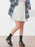 メンズライクなチェックシャツは、バルーンスカートを合わせてガーリーカジュアルに! スニーカーやバッグなどはブラックで、統一感も忘れず。