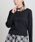 ふわふわカーデはホルターネックで辛さをプラスして。 厚底のロングブーツを合わせれば、一瞬でスタイルアップが可能!
