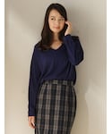 ●トップス さりげなく色っぽい両Vネックデザイン。ドロップショルダーとタックで仕上げたゆるっとシルエットがこなれ感のポイント。着心地よくケアしやすいカットソー生地だから毎日でも着たくなる! ●ボトムス きちんと感もある膝丈タイトスカート。幼くなりがちなチェック柄もモノトーンの配色で大人の着こなしに◎今季はブラウスを合わせたレトロフェミニンコーデにもおすすめです。