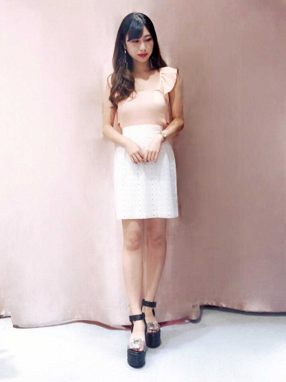 kanaeのキャミソール「バッククロスフリルニット」を使ったコーディネート