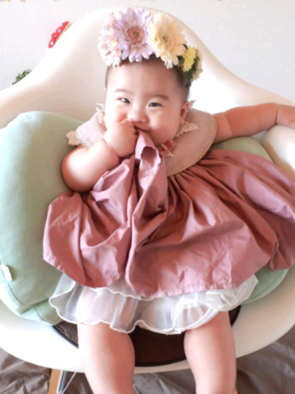 ハーフバースデー記念撮影☆花冠は手作りです。女の子なので乙女ちっくに💐