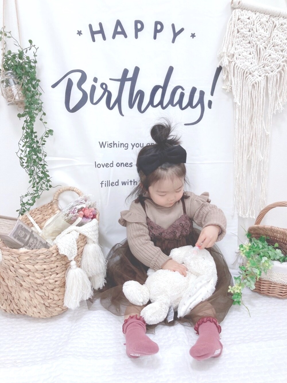 お誕生日コーデ♪ 来月が2歳の誕生日だけど、 写真館もいけそうにないので、 とりあえず家で撮ってみました😢💓 当日はドレス着せようかな🤔