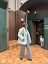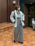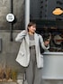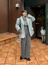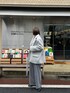 雨の日のジャケットスタイル🩶 オールグレーのアイテムでコーデを組んで 同色だとゆるっとしすぎるので 今流行りのパールビスチェを合わせました☺️
