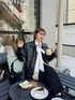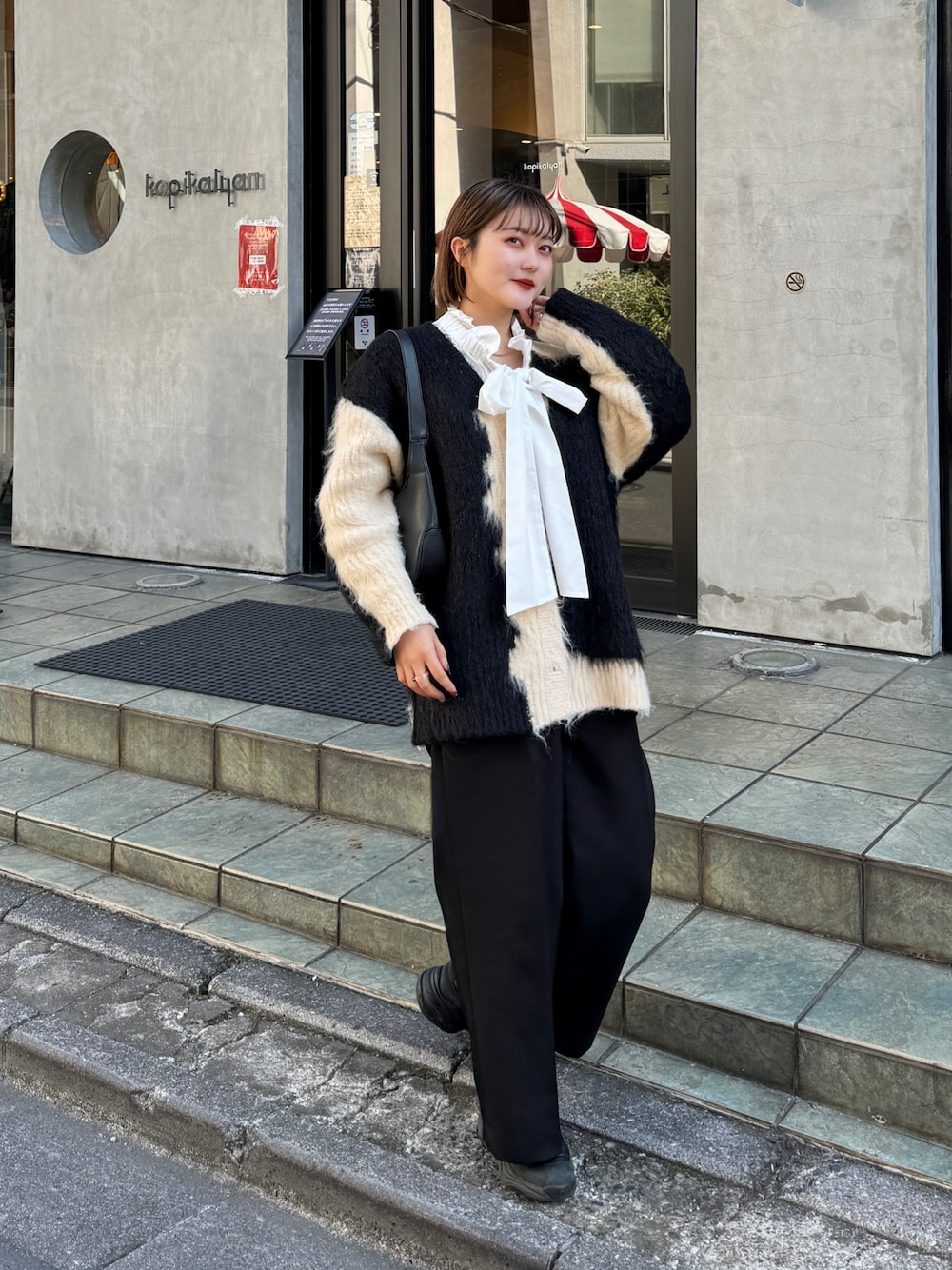 休日カフェスタイル☕️ リボンが可愛いブラウスに カーディガンを羽織りました🏷️ リボンはコーデのワンポイントに✨ レイヤードスタイルでたくさん使えます✌🏻