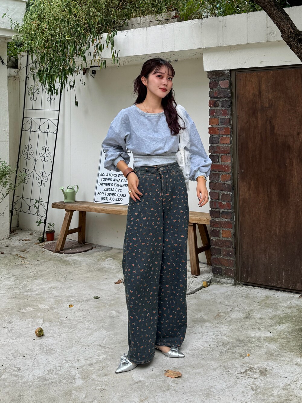 デニムはカジュアルと思われがちですが、、 花柄のデニムにする事で可愛いらしさも+🤏🏻 足元もミュールで合わせて 全体的に雰囲気をまとめました✨