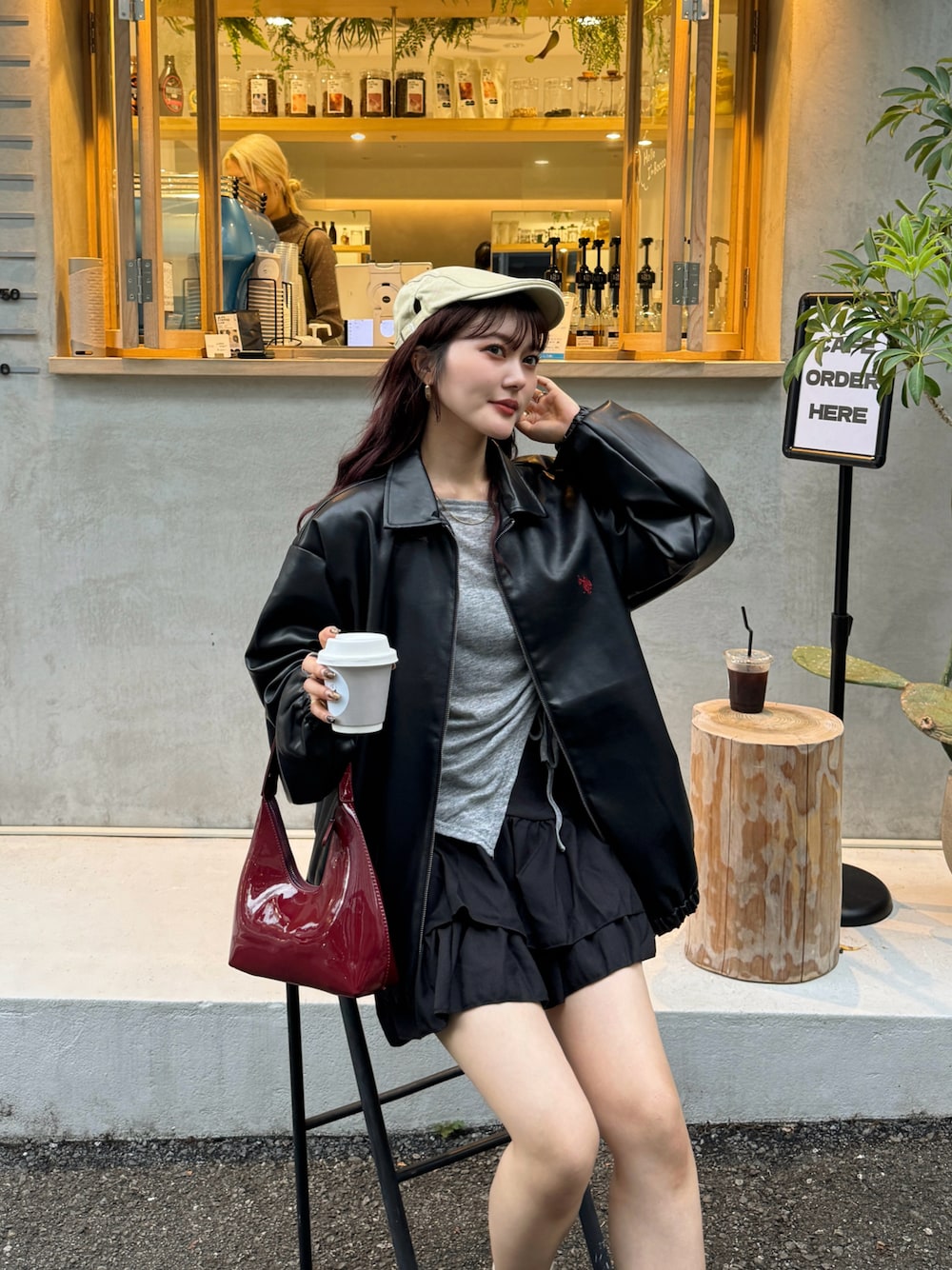 カジュアルになりすぎず、フレアスカートと合わせました✨ 赤のロゴとバッグがリンクして コーデにまとまりを+🫰🏻
