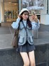 ツイードベストと青シャツを合わせて 秋っぽいコーデに✨ 小物も秋らしくベレー帽を合わせました💕
