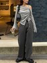 honokaのTシャツ/カットソー「ワンオフショルダー ギャザー リボン 長袖Tシャツ / カットソー」を使ったコーディネート