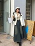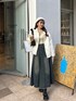 デニムスカートのカジュアル×モコモコアウターのフェミニンアイテムを合わせた デートコーデです🤍 冬は白が可愛い…🍂